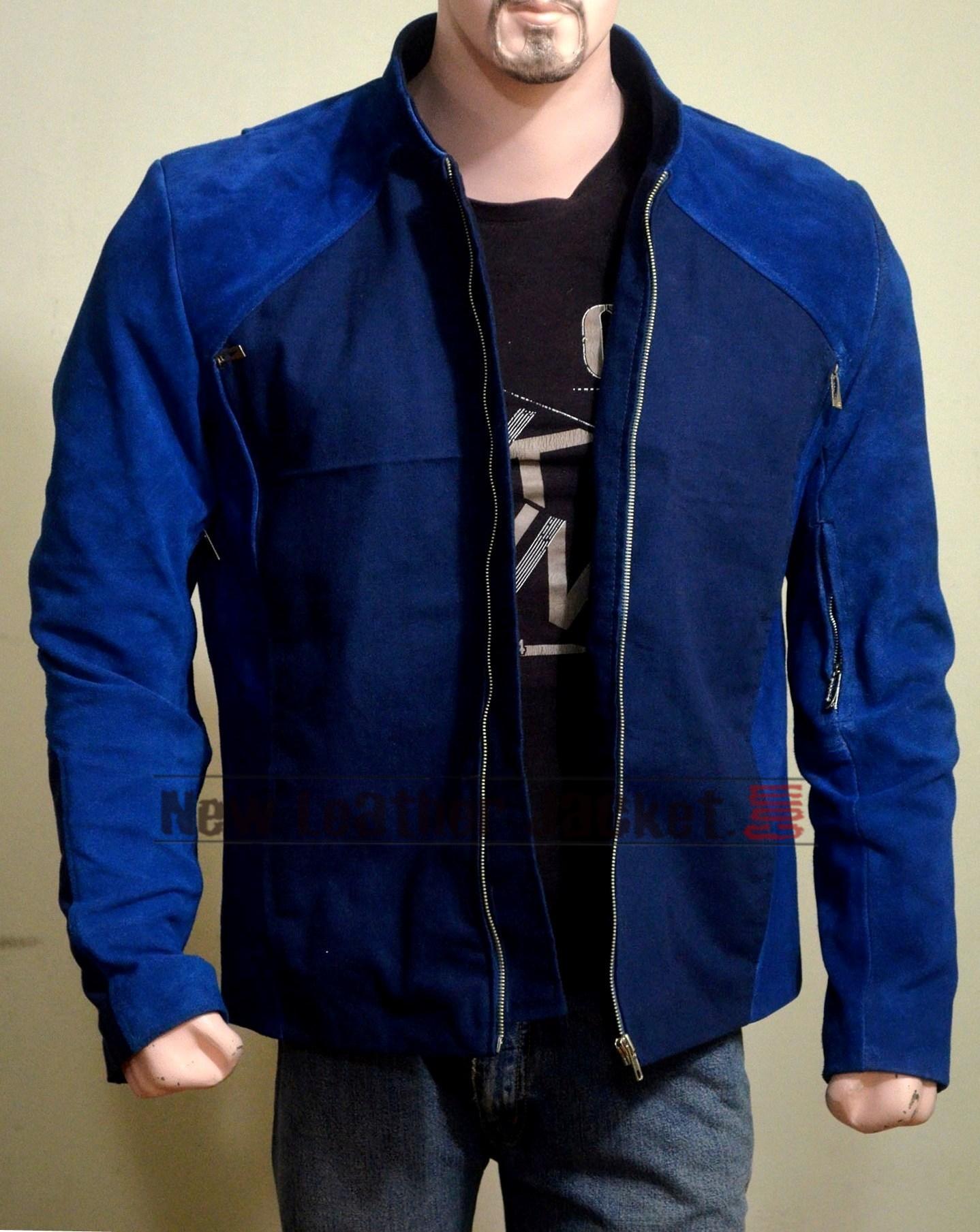 The Winter Soldier Chris Evans Blue Leather Jacket