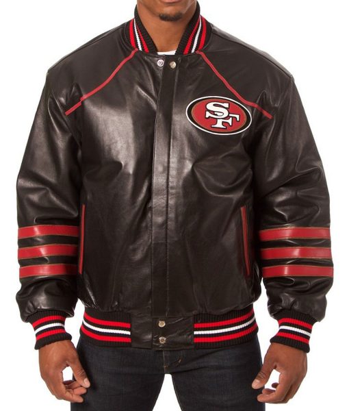 San Francisco 49ers Red and Black Mens Leather Jacket